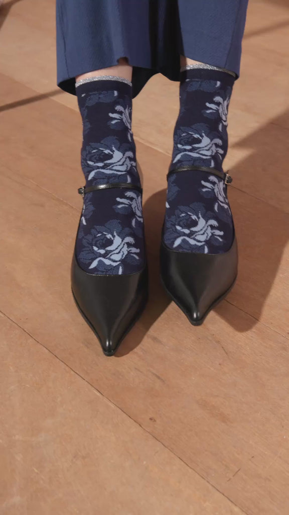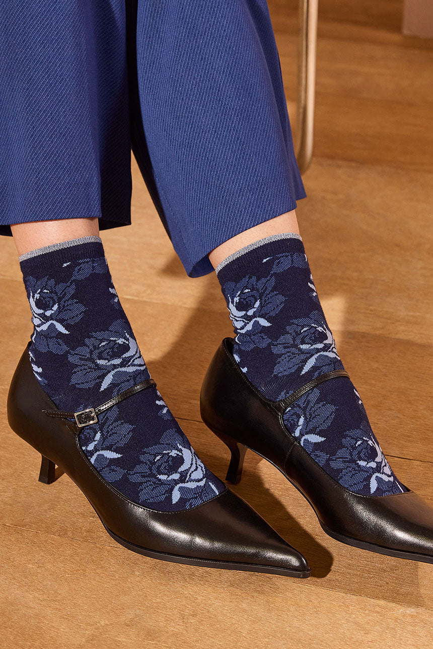Calzini moda con cotone con motivo camouflage floreale. bordo comfort doppio rifinito con lamé. punta e tallone anatomici.